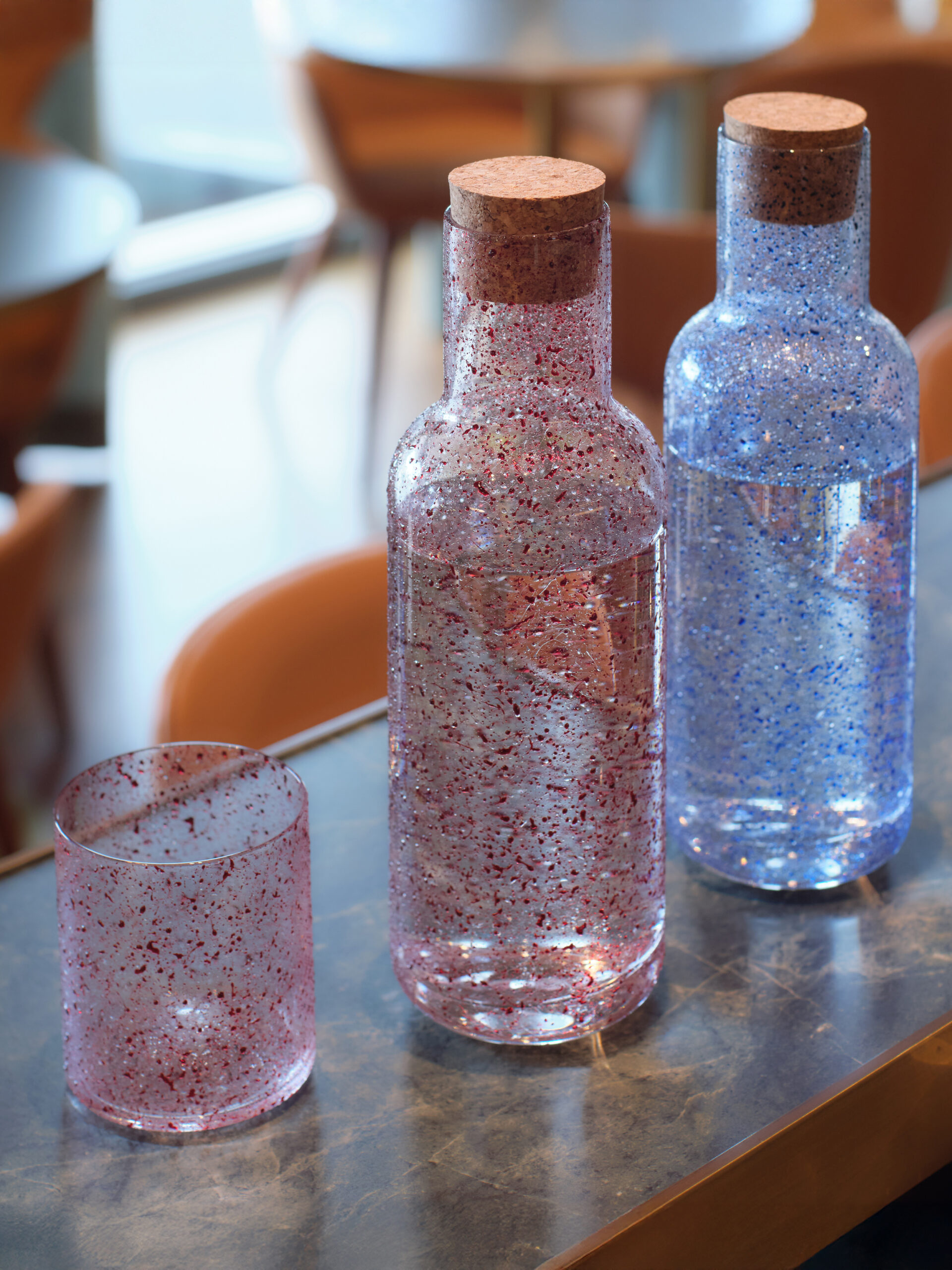 From the collaboration between designer Matteo Giarrè and our laboratory technicians, the Inkspire decoration took shape; a play with colors inspired by the dripping painting technique made famous by American painter Jackson Pollock. A random color jet that creates graphics always different from each other. Any glass product is a blank canvas available for our creativity. The completely handcrafted processing increases the originality of the decoration and transforms each product into a unique piece. The colors, suitable for contact with food, allow use even on tableware products.
