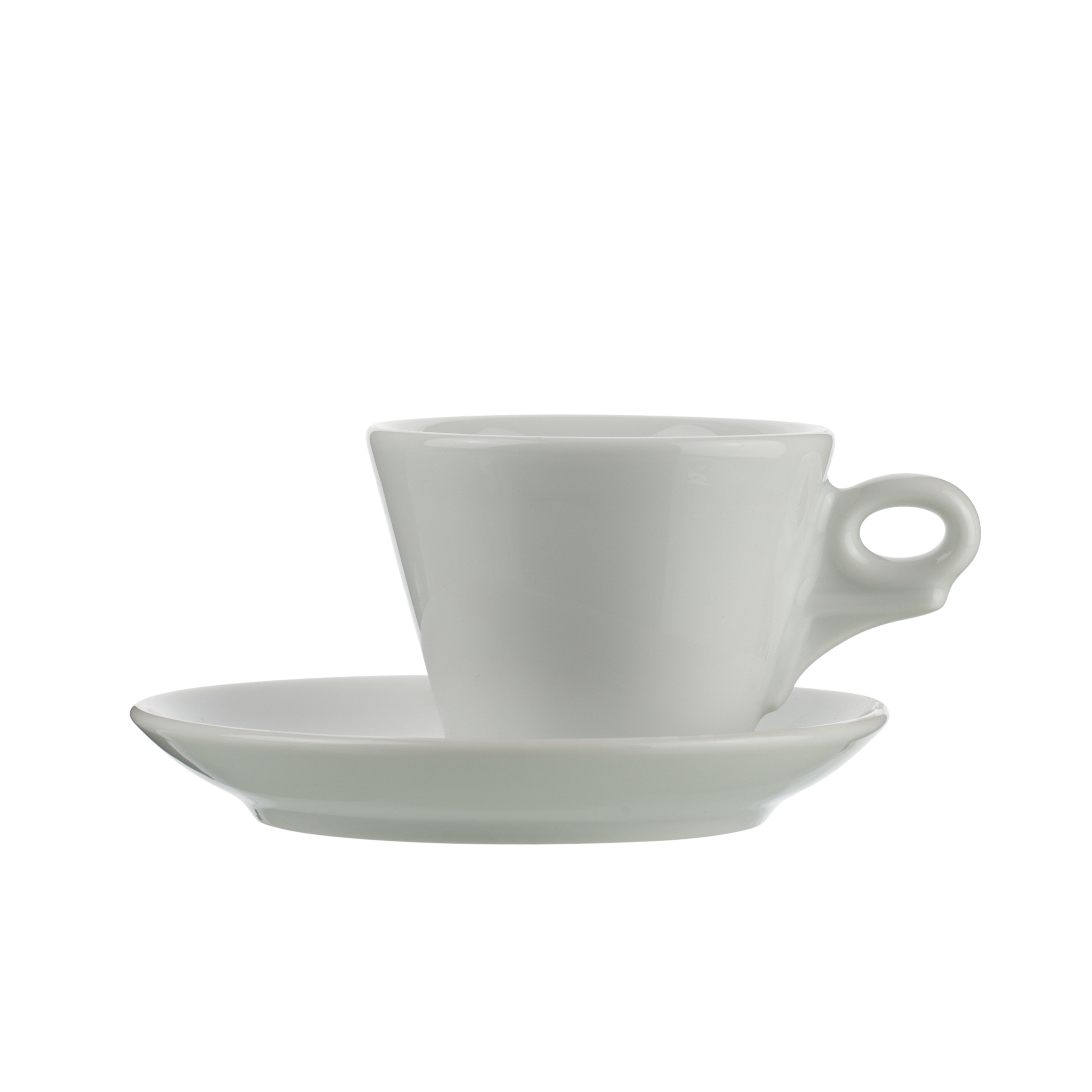 The design of the Giotto Tè Cup is characterised by the play of lines and the circle of the handle, which give the cup a modern and harmonious appearance. One of the most interesting features is the position of the cup on the plate, which is moved to the side. This detail not only adds a touch of originality, but also lends a sense of lightness and movement to the set, making it ideal for those who want a unique viewing experience.